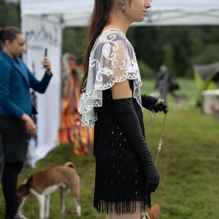 After days of rain the beauty show started later than planned under very muddy conditions. Many followed the cue to dress up in the 20s style of the last century. Beautiful and colorful show with the two Irish judges.